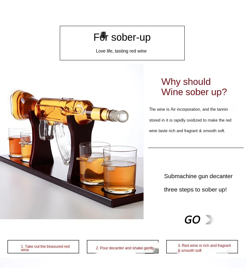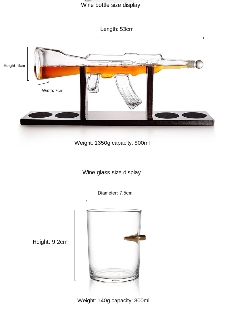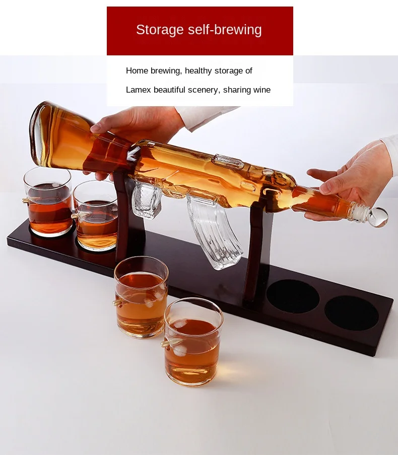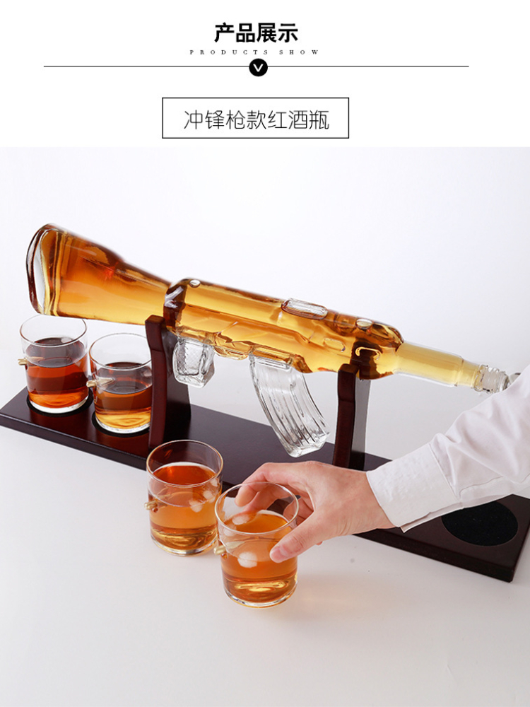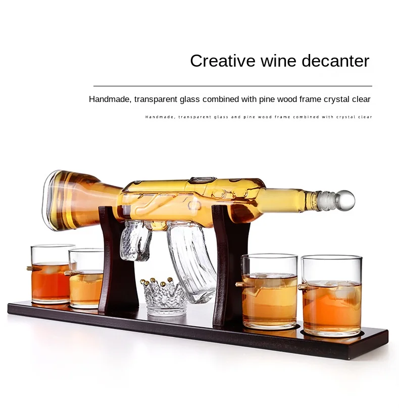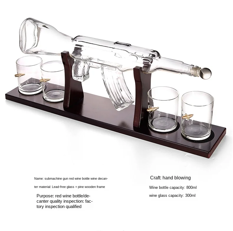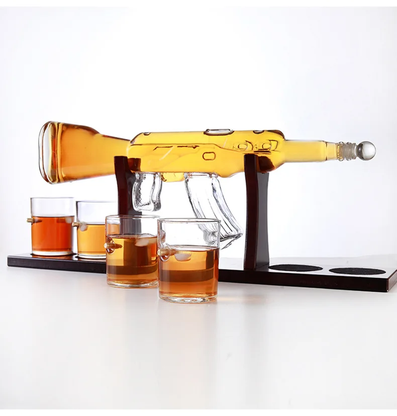 Elegant Gun Whiskey Shape Glass Wine Container Glass Wine Set Set Craft Wine Bottle